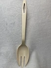 This vintage Tailor Made Products spork serving spoon fork is a unique addition to any kitchen. With an oval shape and almond color, it is perfect for any universal food compatibility. The handle is included and it is made of plastic/nylon material. This original piece was manufactured between 1960-1969 and is a one-of-a-kind item. It is perfect for collectors or anyone looking for a rare kitchen gadget. The set includes one spork and is an excellent addition to any kitchen tools and gadgets collection.