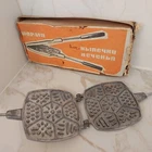 A famous Soviet cookie mold for baking sweet cookies. The sweet treat which any Soviet kid craved for! Ancient soviet bakeware wafer and cookie baking dish. Form with original box. I have all forms of retro times of the USSR and made in compliance with all food metal quality standards. Size: - Diameter mold: 16.7 cm./ 6,57 in - Length with handle: 40.5 cm./ 15.94 in - Weight - 1205 grams. Please note: - All photo are real. - Real colors may vary slightly from their appearance on the screen. All goods will be packed and shipped by international airmail with tracking number for 1 - 3 days. Delivery usually takes about 1-3 weeks. The buyer pays the customs duties and taxes associated with the delivery to his country.