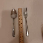 Vintage Unknown Maker Stainless Steel Flatware 2 Piece Lot 1 Fork 1 Spoon In good pre-owned condition may show signs of wear from use/handling/storage/display. Please view all pics for condition/details/flaws/issues. SOLD AS IS There are surface scratches on items please see photos 4-6 & 10-14, there are marks/spots/dirt/debris/rust on items please see photos 4-6 & 10-14, the spoon handle looks bent please see photos 9 & 12, the prongs on the fork look bent please see photos 6-8, please see all photos for condition/issues/details.