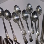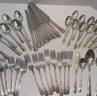 Elevate your dining experience with this vintage Harmony House Maytime flatware set. The set includes 51 pieces of flatware, each with a beautiful Maytime handle pattern. With a mid-century modern style, madder in 1944 according to replacements.Com 8 knives 8 dinner forks 8 salad forks 8 soup spoons 8 teaspoons 7 dessert spoons Butter knife Sugar spoon 2 servings spoons Please feel free to contact me with any questions you have