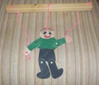 Vintage primitive wood boy puppet on strings, folk art, 7" high