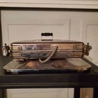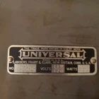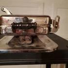 Vintage waffle maker by Universal. Art Deco. Electrical plug not existing. Some build up on the underneath side. No dents or rust. Needs a good cleaning. no plug.