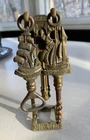 1930s ORNATE HEAVY BRASS NUT CRACKER NUTS & WINE SET,DEPICTING SHAKESPEARE AND THE MAYFLOWER & REVENGE SHIPS. THESE ITEMS ARE IN VERY GOOD CONDITION, APPEARS BASE HAS BEEN POLISHED AT SOME POINT, BIT OF RESIDUE TO BE CLEANED OFF.. FEATURES SHAKESPEARE 1564 TO 1616.ON THE NUTCRACKER "ENGLAND" STAMPED WITH REGISTRATION NO 813524 I BELIEVE. THE CORKSCREW AND THE BOTTLE OPENER FEATURES THE "MAYFLOWER" AND REVENGE SHIP. SOME RUSTING TO THE CORKSCREW, WILL NEED SOME BUFFING. STAND MEASURES 6 3/4" TALL