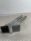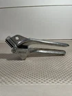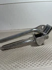 This vintage EKCO garlic press is a must-have kitchen gadget for any cooking enthusiast. Made of durable aluminum, it is built to last and is easy to clean. With a sleek silver color and compact design, it takes up minimal counter space. Measuring 3 inches in height and 7.5 inches in length, this garlic press is perfect for any kitchen. It is dishwasher safe and features easy cleaning properties. Made in Taiwan, it is a high-quality kitchen tool that is sure to impress. Add it to your collection of kitchen gadgets today! Please see photos as part of description.