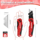 Description High Quality: The blade material is high-strength stainless steel SK5. The blade can stay sharp for a long time without bending. It can cut paper, rope, leather, soft plastic, water pipes, etc. Aluminum die-cast molding makes its blue handle more durable. The non-slip handle is ergonomic and comfortable to use. Quick Blade Change: Simply press the release button to remove the blade and insert a new one. Change blade quickly and safely without any tools. Blade Storage: It includes 13 SK5 blades. The handle can store 3 blades. The red and blue blade case contains 10 trapezoidal SK5 blades. Push-button design, push one blade at a time until it uses out. Portable and Lightweight: The folded size is only 4.5 inches. And the weight is only 5 ounces. The back clip feature makes it easy to carry belts, pockets, and bags. Ideal Gift: The blue utility knife can be kept as a tool in your garage, tool kit, home, and office. The blue folding knife is perfect as a gift for Father's Day and Valentine's Day. Pink Ribbon: WORKPRO Tool is donating $0.1 from this purchase to the NATIONAL BREAST CANCER FOUNDATION, INC. NBCF is Helping women by providing early detection, education, and support services to those affected by breast cancer. Manufacturer HANGZHOU GREATSTAR INDUSTRIAL CO.,LTD Part Number W011047AB/W011048AB/W011049AB Item Weight 7.7 ounces Package Dimensions 5.63 x 2.87 x 1.34 inches Item model number W011047AB/W011048AB/W011049AB Color Red/Blue/Pink Material Stainless Steel Handle Material Aluminum Special Features Lightweight, Foldable Blade Storage in Handle The handle can store 3 blades. Push Button Design The push-button is designed for easy access to the blade. Push one blade at a time until it uses out. SK5 Sharp Blade Steel construction Compatible with most standard utility knives WIDELY USE For Cutting the Leather For Cutting Bubble Bags For Cutting the Carton