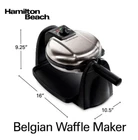 Serve perfectly fluffy Belgian-style waffles every time with this Hamilton Beach waffle maker. The flipping design ensures a thick, fluffy result, and the removable plate design and dishwasher-safe grids and drip tray simplify kitchen cleanup. A brushed stainless steel body gives this waffle maker an updated look with a durable design. Dimensions: 10.5 inches x 16.0 inches x 9.25 inches