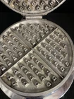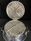 This vintage waffle maker from LANDERS, is a must-have for any collector! , this standard round waffle maker has a capacity for 1 delicious waffle . The electrical power source provides 660W of power, ensuring that your waffles will be cooked to perfection every time. The silver-colored waffle maker is in good working condition and comes with its original cord. This is a great addition to any kitchen and a wonderful way to experience a piece of history. Don't miss out on the opportunity to own this unique and charming waffle maker. Has some Wear/staining /oxidation on finish and on griddle. Works awesome.