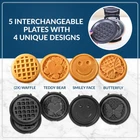 Create quick and healthy waffle meals on the go. The Nostalgia Waffle Maker and Plate Bundle allows you to mix and match waffle iron designs selecting from teddy bear, butterfly, smiley face, and classic waffle patterns to make tasty golden brown waffles! Create waffles using your personalized recipes and ingredients for waffles to make them you how want them. The ceramic nonstick cooking surfaces allow you to cook tasty waffles to perfection every time and make cleaning up later a breeze. This mini waffle maker has a simple plug-in to start use. It’s lightweight and compact, making it great for dorms, RVs, apartment kitchens, offices, and travel. Looking for a fun and unique gift? This waffle maker is the perfect gift for weddings, birthdays, holidays, college living, and more. MIX AND MATCH PLATES : Making fluffy, delicious waffles to golden-brown perfection is quick and easy. This appliance also comes with FOUR plate designs for you to select for making stylish waffles, including Butterfly, Teddy Bear, Smile, and Classic Waffle. WAFFLES ON THE GO : For the busy bees living fast-paced lives, we’ve got breakfast, lunch, dinner, and snack time covered! Make a tasty waffle in minutes and get fueled for the day or pack your waffles in your lunch box for eating later. PIECE OF CAKE : Swapping plates and making waffles is a cinch. All you need to do to switch plates is press the eject button and insert your desired plate, and press down to lock it in place! Then when you’re ready to cook, simply plug the waffle maker in and let it heat up. You’ll be making waffles in no time at all. BEYOND WAFFLES : You can make endless tasty creations beyond waffles including egg bakes, hash browns, cinnamon rolls, and much more. Try the recipes included in the instruction manual or attempt your own tasty, creative ideas. NOSTALGIA : From designs inspired by early 20th century America to the timeless appeal of our appliances, we offer unique, novel, and fun products for the family. We preserve the past, embrace the present, and look forward to the future.