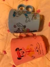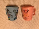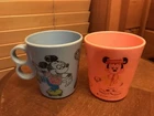 HELLO, UP FOR AUCTION ARE THESE TWO (2) VINTAGE COLORFUL CUPS "WALT DISNEY PRODUCTIONS" 1) PINK W/MICKEY/DONALD - EAGLE - MADE IN USA #7 1) BLUE W/MICKEY/MINNIE/DONALD - EAGLE - MADE IN USA #8 3 1/2" TALL 3 1/4" ON TOP 2 1/4"+ ON BOTTOM 2 GREAT DISNEY COLLECTORS ITEMS! OR FOR MOMS/KIDS THAT LIKE 2 FINGER HOLE PLASTIC CUPS ;-) PRE-OWNED - FADED. PLEASE SEE ALL PHOTOS FOR CONDITION. PROB... 1960'S. WALT DISNEY PRODUCTIONS MADE BY EAGLE USA. USED - PICKED UP AT A SALE - THEY ARE NOT CLOSE TO PERFECT, BUT NICE VINTAGE WORN LOOK - NEED CLEANED, INSIDE GOOD!. PLEASE ASK ANY ?? THEY ARE "AS IS" NO REFUNDS/RETURNS - SHIP TO THE USA ONLY! THANK YOU IN ADVANCE FOR YOUR TIME - PLEASE SEE MY OTHER AUCTIONS.