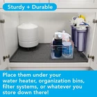 Waterproof Under Sink Mat Gray 37" 1/4 x 22 1/4 Shelf Liner Cabinet Liner for Home Kitchen & Laundry Cabinets Plumbing Leak Water Damage Prevention Flexible Under Kitchen Sink Driptray Superior Protection: L x 22" = kitchen cabinet; L x 19" = bathroom cabinets; are the ORIGINAL Under Sink mat designed to protect your cabinets, shelves, and floors from damage caused by plumbing leaks, stains, scratches, product or chemical spills; can hold up to gallons of liquid in the event of a leak or product spill, making our mats the leader in the industry; Our mats have a multipurpose function as a driptray, under sink cabinet mat, and a shelf liner all-in-one Flexible and strong design, our waterproof, low-density polyethylene mats allow for flexibility and durability and produce no toxic VOC's, featuring raised, angled side walls and a textured surface to ensure a snug fit while keeping stored items from getting wet in the event of a leak; Sturdy enough to support gallons of water yet flexible enough to install through small cabinet openings and open back up to its original shape once inside Easy to clean and install and can be removed quickly for clean-up; Our under sink drip tray pans are the perfect solution for messy, dirty, or disorganized bathroom cabinets; Great for vacation homes and rental properties; if you do not see your measurements, please contact me and we will guide you to the best fit satisfaction against manufacturing defects; Water sensor sold separately; please check for plumbing coming through the bottom of your cabinet before ordering; Measure the inside of your cabinet and make sure your supply lines and drain aren't coming from the floor or your cabinet or else the mat will require modification American Company: are designed and engineered in the USA, headquartered in Central Florida; Available 8 am - 5 pm EST to answer any questions Ships Flat: Unlike cheaper silicone alternatives, our mats ship flat and arrive ready to install without dents or creases, ensuring a perfect fit and long-lasting protection for your cabinets. Under Sink Cabinet Mats feature a robust construction designed to withstand daily use