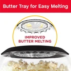 Popcorn Popper Machine: Make enough popcorn to treat the entire family from the comfort of home; This popcorn machine makes up to 6 quarts of popcorn in minutes Convenient Features: This countertop popcorn machine features heat-resistant handles and a clear vented cover that doubles as a 6-quart popcorn bowl; A uniquely designed butter well and snap-on butter cap improve melting Premium Performance: This tabletop popcorn machine comes equipped with a motorized stirring rod that produces larger kernels and more pops per batch; Automatic reversal function prevents kernels from getting stuck Easy To Clean and Use: Nonstick coated popping plate wipes clean easily Simple Storage: Nesting design allows for storage in most any space and includes a built-in no-tangle cord wrap The West Bend Stir Crazy Popcorn Popper is a convenient and efficient way to make tasty butter popcorn at home. It has its own built-in butter well with improved butter melting and a motorized stirring rod designed to evenly coat your snacks. This electric popcorn popper also features heat-resistant handles for improved safety and convenience. Its countertop-safe base is also heat-resistant.