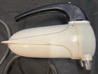 The White Sunbeam Mixmaster Junior Hand Mixer is a vintage handheld mixer with a metal body and three speeds. This Sunbeam model does not include beaters but is still in working condition. The mixer is a collectible item and was manufactured in the United States, showcasing a weathered finish that adds to its vintage charm. Perfect for kitchen enthusiasts or collectors of vintage small appliances, this Sunbeam Mixmaster Junior Hand Mixer is a nostalgic piece of kitchen history. Please note that you will need beaters. The finish has Scratches and wear