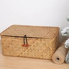 Wicker Shelf Baskets with Lid,Handwoven Seagrass Basket for Natural Small
