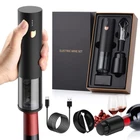 Luxrious 4 in 1 Gift Set: Are you still worried about the troublesome wine bottle opening operation at the candlelight dinner? Try this wine set,which includes an automatic wine opener, a wine aerator&pourer, a foil cutter and a vacuum stopper. It’s perfect for any occasion such as Mother's Day, Father's Day, birthdays, anniversaries, weddings, Christmas, Valentine’s day, retirement or housewarming. Fast and Efficient: Open bottles in seconds! Foil cutter can easily remove the bottle seal. Just press the button once, and the cork can be removed in 6 seconds. It can automatically turn over and exit the cork. The wine opener equipped with USB charging cable, super fast charging for 90 seconds, you can open 2-4 bottles! One full charge can open up 70 bottles! Enjoy the freedom to use it anywhere, whether at home or on the go. Perfect Wine Accessory: The wine pourer can make the red wine and oxygen full contact, quickly wake up the wine. The reusable wine vacuum stopper can preserve the wine's flavor for several days, and numbers/dates on top which can record the time you last opened the bottle. 100% seal anti-leakage! The perfect solution for your home,party or bar. Elegant & Fashionable Design: Compact size for easily put into a travel bag. Made of black frosted material, the surface is smooth, comfortable and easy to hold, and the unique and fashionable function buttons will catch your eyes. Come with exquisite gift box, it is a good choice to take it as a gift for wine lovers. 100% Quality Assurance: Wine Opener is come with FCC, CE, RoHS certification, which is more secure in quality compared to others. If you have any questions or suggestions, please feel free to contact us. Our professional customer service team will solve your problem within 24 hours.