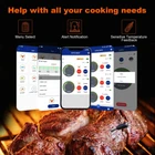 INTELLIGENT COOKING SYSTEM: The wireless thermometer comes with ten built-in recipes, such as beef, veal, lamb, and chicken. You can also add a new menu for customizing the temperature and receive alerts from the Bluetooth meat thermometer. Updated meat thermometer probe gets maximum cooking accuracy from any angle with 2 internal and 1 ambient sensor. Easily cook anything you want and get great results. SMART MEAT THERMOMETER: This 100% truly wireless meat thermometer comes with a built-in Bluetooth repeater that extends the 500FT range. You can store and charge your 2 probes, and it offers over 36-48 hours of continuous cooking per charge. It is great for electric barbecues, smokers, ovens, grills, frying pans, or sous vide cooking. SUPER LONG RANGE: With a timer and temperature chart on the app page, you can monitor the real-time temperature from meters away. The smart base of the wireless meat thermometer transmits signals up to 500ft through built-in intelligent monitoring. This kitchen meat thermometer beeps once it reaches the preset food temperature. You can have a hassle-free culinary experience, whether for BBQ outdoors or in your kitchen. PROBE FEATURES: Our wireless grill thermometer has a stainless steel design, is water-resistant, and easy to clean. It can monitor internal meat temperature up to 608°F, with accuracy within ±0.5°F. EASY TO USE: 1. Charge the booster for 10-15 minutes. 2. Download and launch the app. 3. Take out the probe and click the "+" sign in the app to pair the booster. Start making the meat dishes and set the desired temperature. Sit back, relax, and the app will notify you when your food is ready.