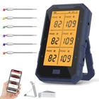A smart digital meat thermometer is a necessity for everyone nowadays who wants make the cooking job easier without sticking in the front of grill or oven! How does GHUGOD grill thermometer help? Easier Your Cooking Job - Very easy to use, simply plug the probes in meats and go grab a beer and enjoy spare time with family while grilling, when it rings, just take your plates back to get your well cooked foods to impress your family and friends. Multitask for Big Meals - Monitoring 6 different meats or grill/smoker temperature synchronously. Fast Read & High Accuracy - Instant read temps of your food in 2 seconds, monitor temps at high accuracy with only +/-1% APP Remote Control Your Cooking - Download the free APP on your phone or tablet, Control the cooking process of your food within 198ft (outdoor)/100ft(indoor). Smart Alarm - Set your preferred doneness level, alarm both on the thermometer and your phone when the food is cooked as you expected, freeing you from attaching in front of the grill or smoker. Takes No Place - With strong magnet on the back allows you to attach conveniently it on most metal surfaces.High quality carrying case: store everything in it neatly. Come and get this great item to impress your guests. Parameters: ◆Temperature Range:32℉-716℉ ◆Bluetooth Range:Outdoor 198 ft,indoor 100ft ◆Accuracy: (32-320℉) +/-1% or(320-716℉) +/-2% ◆Cable Length: 47" ◆Probe Length: 3.93" ◆App Required: CHUGOD , free in the AppStore/Google Play ◆Power By:2 X AA Battery (Not Included) ◆Temperature Unit:℉&℃ Package 1 x Thermometer Controller 3 x Aluminum Head Probes 3 x Silicone Head Probes 2 x Probe Holders 1 x Silicone Brush 1 x Instruction 🍗【Bluetooth 5.0 Remote Control & Multiple Temp Alarms】Features with advanced bluetooth techonlogy, the oven meat thermometer provides the strongest, reliable connection with your phone, allowing you to get the real-time status of food, up to 150ft indoor and 300ft outdoor away! Red light flashes in advance to warn meat is just 10℉ away from target temp, and beeps with vibration for the ripe food. You can pull the meat off at the perfect time, no need to sticky yourself in front of the grill. 【6 Colored Probes & Large Spilt Screen】Comes with 6 stainless steel probes with 3.7 FT teflon cable, the digital cooking thermometer allows you to monitor six different foods or read grill/oven/smoker surrounding temperature simutaniously. Large LCD split display shows real-time food temp of 6 probes, you can reading all food temp at a glance. 【Accurate Fast Readout & Rechargeable Design】 The instant read meat thermometer probes made of stainless steel, are more heat-resistant(temp: 32 to 716°F)and accurate(±1.8℉ mistaken ). With 2-3s fast readout, the wireless thermometer for griling and smoking help you precisely control food temp in ease. The USB rechargeable grill thermometer can last for 50 hours when fully charged in 1 hour, both eco-friendly and energy-saving. 【Preset Temp & Temp Track Graph】The bbq thermometer app contains editable preset temperatures for 9 meat types and and 5 doneness levels recommended by USDA. All of the preset temps can also be customized to your desired tastes. Real-time Temp Track Graph and cooking history data kept in the app hlep you precisely control and make sure food is in best condition. No matter a cooking beginner or a skilled chef, with the accurate meat thermometer, cooking will be more easier but tasty. 【Convenient Usage & Best Service】 The accurate food thermometer with magenet and table stand on the back, allow you to place it on the grill, oven and any other cookers. Backlight design for clear sight of tepm data even in dark night, we try best to provide perfect product ecperience. Your satisfaction is our priority, 24 month product guarantee are provided for the product, if you have any problem about the smart electric thermometer, please feel free to contact us.