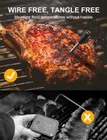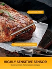 Charge A Little, Serve Much Longer. Insert the probe into the meat and leave it while cooking. There is no power switch on the thermometer; thus, working under high temperatures is safe. Get charged for 5 minutes via the charging dock to serve for 4 hours, thanks to the super capacitor App-Controlled Meat Thermometer. Download the app with Android and iOS versions. Once paired with the grill thermometer on the app for the first time, take the thermometer out from the charging dock, and it pairs automatically (only if it’s charged) and gets ready to serve Cooking Like A . With a timer and temperature chart on the app page, monitor the real-time temperature meters away. Boost your confidence in cooking with this food thermometer, which helps the cooking results with preset temperatures recommended by 100% Truly Wireless. Enjoy wireless freedom and convenience. Wireless meat thermometers free you from tangled and restrained wires, thus, gaining popularity among families in recent years. Great for barbecues, smokers, ovens, grills, frying pans, or sous vide cooking 165ft Wireless Range. Benefiting from the advanced 5.2 Bluetooth technology, the meat thermometer transfers the temperature to the app as soon as the probe detects temperature changes, which means even if when you’re having a nap on the sofa within 165ft, the app will get you alerted