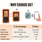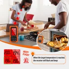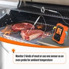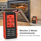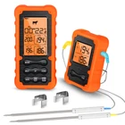 Product Parameters: Effective distance: 100 meters (150 meters in the open without interference) Resolution: 1℃ Measuring range: -20℃~300℃ Error: plus or minus 1℃ within 0 degrees~100 degrees Timer range: 99 minutes and 59 seconds Backlight color: orange + red screen alarm Product size: Host: 130*36.5*70MM Transmitter: 100*57*70MM Probe length (with anti-scald aluminum handle): long probe 172MM wire length 1 meter Material: ABS + silicone + 304 stainless steel Power supply: 4 No. 7 batteries (regular shipments do not include batteries) Features: Dual probe, dual temperature dual-channel mode, you can monitor 2 temperatures at the same time. 8 kinds of meat, 5 flavors to choose from, you can also set the target temperature independently, a set of timers, easy and convenient to operate (you can better monitor the temperature of the barbecue process, the version of the professional-grade barbecue temperature control products, favored by the professional chefs and barbecue enthusiasts)! Adopt high sensitivity RF433 receiving signal module, no interference environment effective distance up to 100-150 meters. You can watch the game or connect with your family, pets or guests while the wireless meat thermometer monitors your meat. After rigorous testing, our signal is strong and stable, up to 2 times the distance of conventional connection and 4 times the distance of Bluetooth. Backlight color changing alarm, humanized design, to meet the different needs of consumers. Wireless oven thermometer, user-friendly interface, very easy to use. Equipped with two XP7 grade fully waterproof high temperature resistant 380 degree Celsius 304 stainless steel probes to ensure the life of the probes, digital oven meat thermometer temperature range:-20℃~300℃(-4~572F). Thanksgiving Christmas gift for men, women, friends, family members Product Includes: 1*Host 1*Transmitter 2*Frosted bag 1*English manual 1*Warning card 2*Long probe (with aluminum handle) 1*Clip On Apr 19, 2024 at 06:20:34 PDT, seller added the following information: On Aug 2, 2024 at 15:39:19 PDT, seller added the following information: On Oct 10, 2024 at 18:15:58 PDT, seller added the following information: