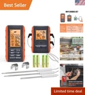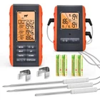 Wireless Meat Thermometer for Grilling Smoking - Kitchen Food Cooking Candy Thermometer with 3 Probes - Monitor Ambient Temperature Inside The Grill Smoker BBQ Oven Thermometer, 490ft,Digital 490ft Stable Signal Connection and Hands Free Monitor: Smoker thermometer with a professional remote signal up to 490 feet, you can watch the game or connect with your family, pets or guests while the remote meat thermometer for grill grilling watches your meat. After rigorous testing, our wireless grill thermometer 's signal is strong and stable, reaching 2 times farther than a regular connection, 4 times more than Bluetooth Professional Feature - Sturdy Construction and User-friendly Interface: The cooking thermometer adopt TPE and plastic integral forming technology - anti-skid and more sturdy. Better than some other digital meat food thermometers wrapped with rubber sleeve. The buttons on the left are for meat and taste setting, the buttons on the right are for timer setting, make the grill thermomter for inside grill very straightforward to use Monitoring Food and High Low Ambient Temp Range Simultaneously: Meat smoking thermometer not only allows you to set your own cooking temperatures, but also can set HI LOW temp range for your grill or smoker to know when to add more fuel! oven safe meat thermometer will flash and beep to remind you if the temperature ever goes out your set range IPX7 Waterproof Probe with Step-down Tip Design: BBQ meat thermometer for cooking has 3 probes which are built to IPX7 standard with non-slip design, easier to plug in or pull out. Heat resistant material help to prolong service life. 2 food temp probes / digital candy thermometer with step-down tip design to get temperature more precisely and quickly - Instant Read within 1-3s USDA Preset Temperature Settings and Built in Timer: Oven thermometer for electric oven with preset temperatures for 8 types of meat and their various doneness levels recommended by USDA; All of the preset temps can be reset to your desired tastes, it's a professional digital meat thermometer for grill / wireless thermometer for smoking Digital Meat Food Grill BBQ Oven Smoker Kitchen Thermometer for Cooking Smoking Grilling