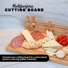 🧲 Signature Magnetic Backboard (Patent Pending) - The magnetic snap of your knife between cuts is a satisfying feature that adds a touch of joy to your cooking process. 📱 Convenient Built-in Phone/Tablet Groove - The backboard groove securely holds your phone or tablet at the perfect angle, making it easy to follow along to your favorite cooking instructions or recipe videos as you slice, dice, and chop. The backboard is extremely strong, and the groove is deep enough to support most phones and small tablets. Follow along with your favorite YouTube chefs efficiently and hands-free, or simply watch your favorite series as you snack directly off the board! 🧀 Included 4 Piece Cheese Knife Set - The perfect addition to complete your cheese board set up. Create a classic charcuterie board or spice things up a bit. Made of bamboo handles and stainless steel blades, these 4 cheese knives attach conveniently to the magnetic backboard for a stylish presentation and so that your guests always find the right tool to dig in to your savory selections. Dazzle your guests as they admire your charcuterie masterpiece - presentation matters! 🌱 Eco-Friendly Bamboo Material - Aside from being an environmentally sustainable material, bamboo is an incredibly durable material that won’t damage your knives. It is also nonporous so it resists water absorption and cracking to keep health hazards at bay. Our board meets all FDA food safety standards so you can comfortably prepare or serve any of your favorite foods. With proper maintenance, you’ll be able to enjoy your beautiful board for many years to come. 🎁 Thoughtful Gift Idea - The ideal gift for anyone who knows their way around a kitchen or hopes to one day figure it out. Whether the occasion is a birthday gift, graduation gift, wedding gift, or a house warming gift for new home owners, surprise your loved ones with something they'll actually use and enjoy for years to come. Designed for amateur or seasoned chefs and thoughtful party hosts alike, they'll surely be excited to use their new favorite addition to their home and kitchen.