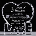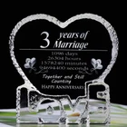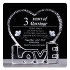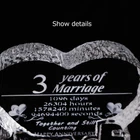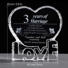Material: K9 crystal Technique: Laser engraving Craft: Handmade It makes a thoughtful gift for anniversaries. Perfect for 3rd wedding anniversary, gift for husband, wife, couples. 3 years of Marriage 1096 days ...The text is carved inside the crystal by laser engraving machine.It will never rub off. The love shape gift is perfect for you to express your love.Send your warm, best wishes.Give him&her a surprise,a unique birthday,anniversary gift. The crystal sculpture is suitable for anniversary gifts for her,women,wife,mom,the couples,girlfriend,him,dad,men,husband, boyfriend,dad or your best friend.All ages will love the gift. Measures: 3.9" x 3.9"x 0.98".Weight:1 LB.Stands freely on its own. Beautifully packaged in a glossy gift box and fabric bag. Ready to give as a gift.