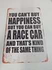 Add a touch of rustic charm to any space with this decorative metal sign. The rectangular shape and 8x12 size make it a medium-sized piece that can be hung or wall-mounted in a vertical orientation. The sign features a race car subject and the words "You Can't Buy Happiness But You Can Buy A Racecar" in a rustic/primitive style. Crafted from high-quality metal, this sign is durable and long-lasting. Its hanging and wall-mounted features make it easy to display in any room, including the garage or outdoors. The sign also has a decorative rusted look that adds to its rustic charm.