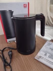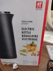 Introducing the ZWILLING Enfinigy Cool Touch 1-Liter Electric Kettle, a sleek and modern addition to any kitchen. This cordless water kettle boasts a beautiful black color that will complement any kitchen decor. Made by renowned brand ZWILLING J.A. HENCKELS, this kettle is a reliable and durable choice for all your boiling needs. With its large 1-liter capacity, this electric kettle is perfect for hosting tea parties or for simply boiling water for your morning coffee. The cool touch feature ensures that the exterior of the kettle remains cool, making it safe to handle. This water kettle is a must-have for anyone who enjoys hot beverages and wants a stylish and efficient way to boil water. *THIS ITEM IS IN ORIGINAL BOX, WITH ALL COMPONENTS, APPEARS TO BE LIKE NEW CONDITION.