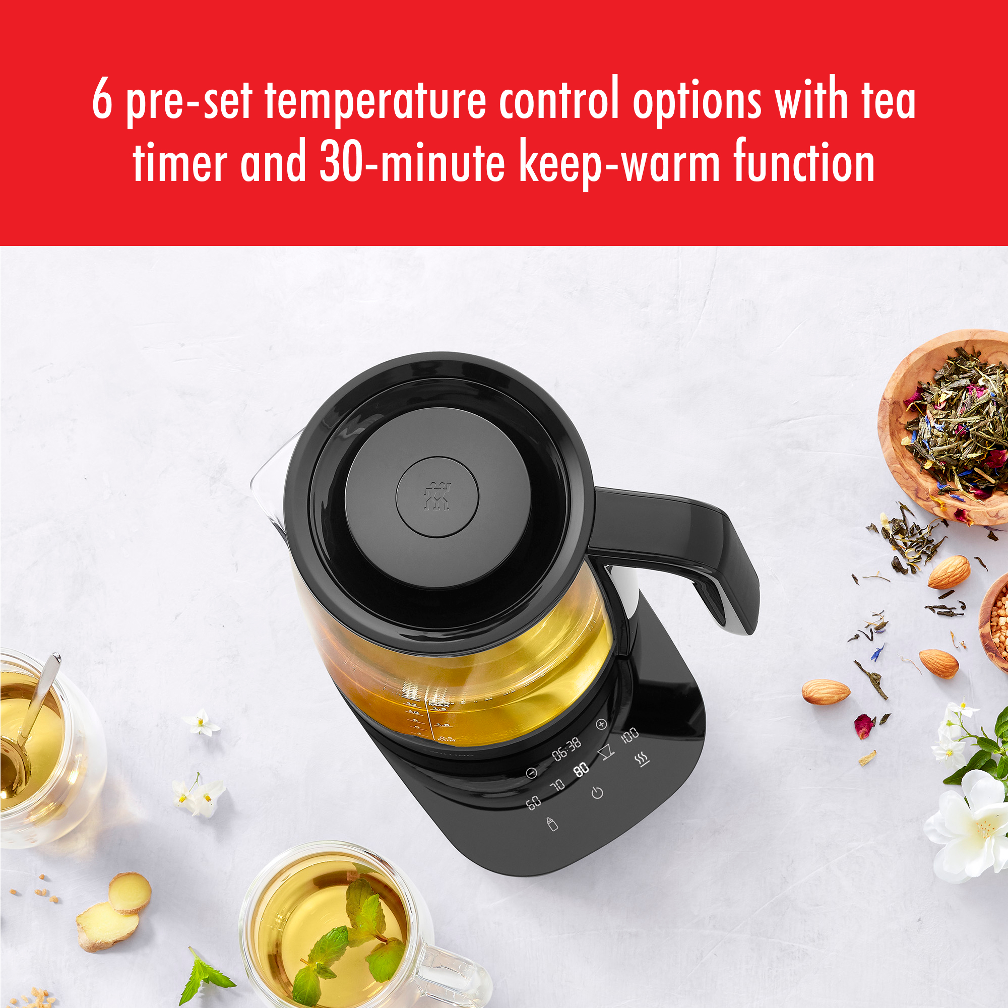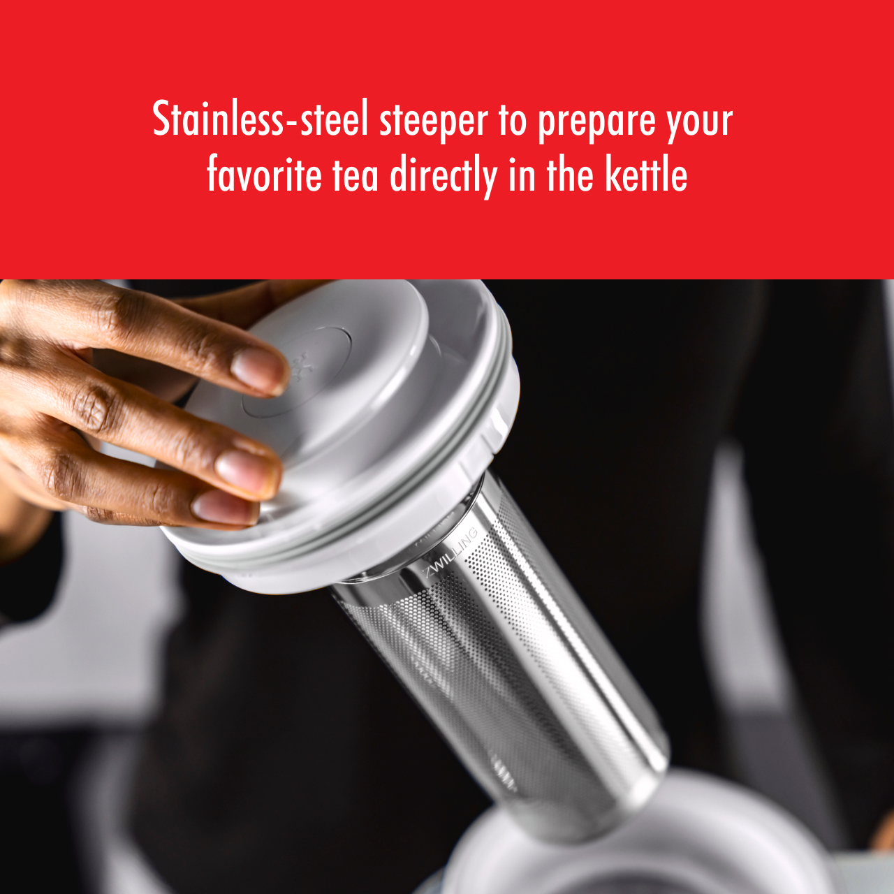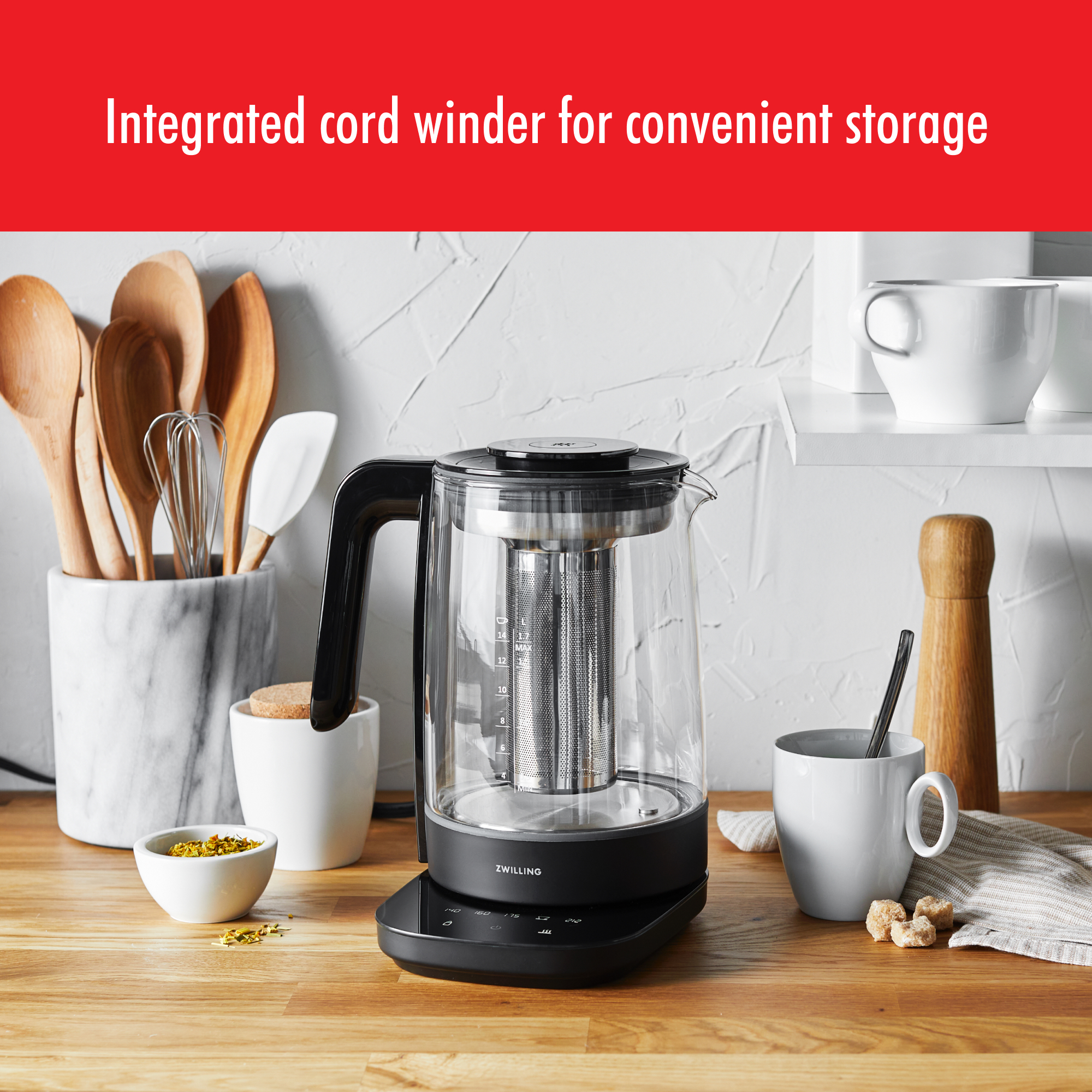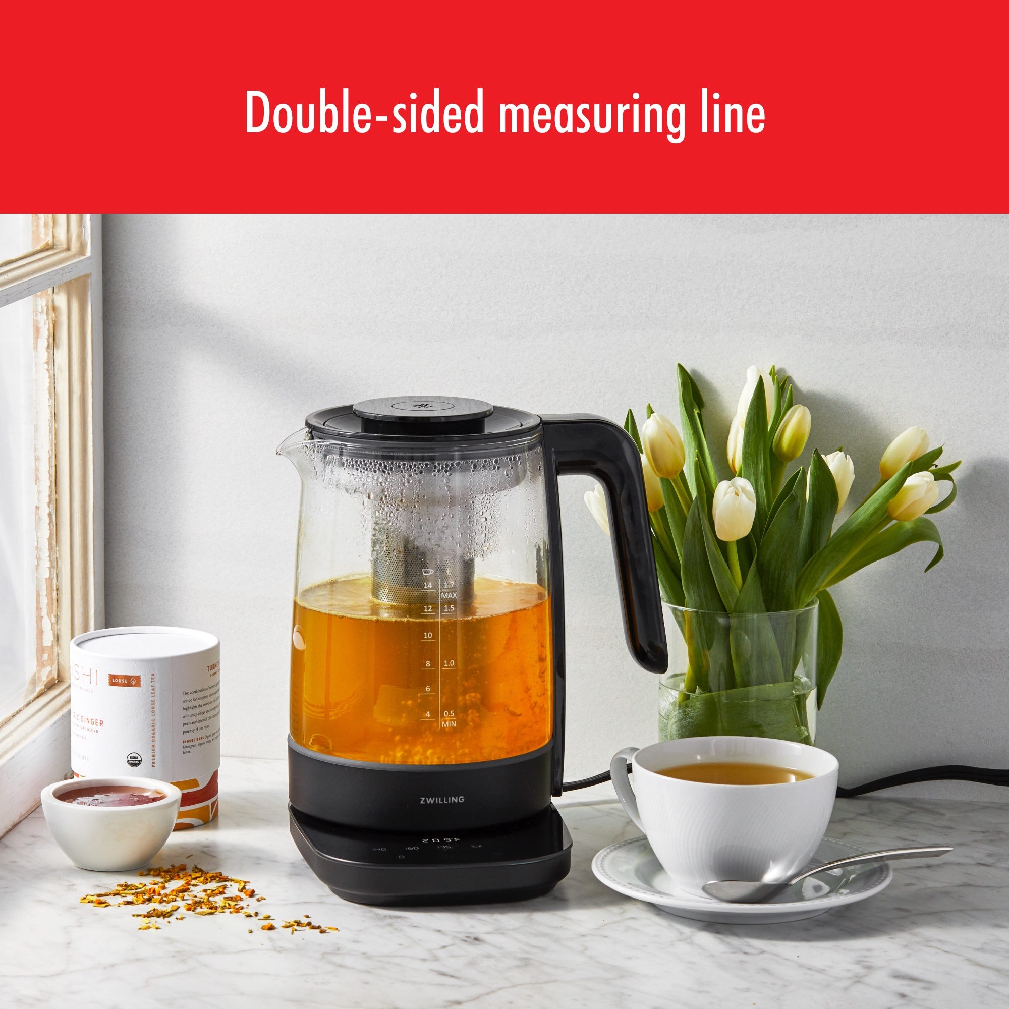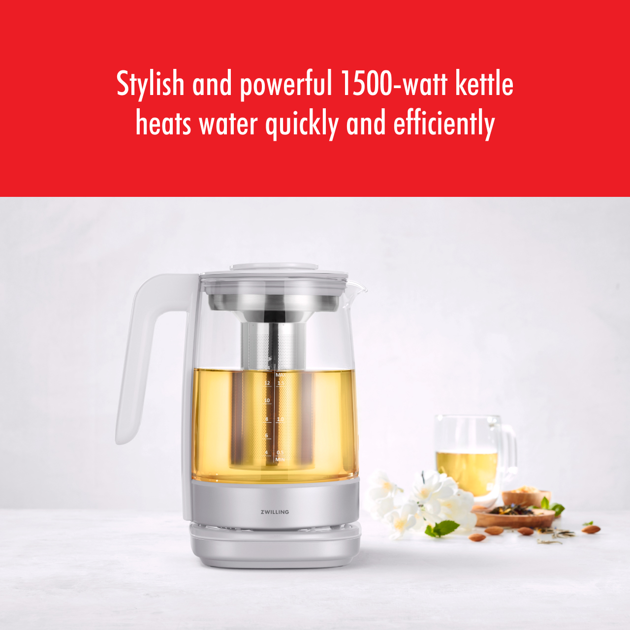 Borosilicate glass body Double sided measuring line, max capacity 14 cups Stainless steel steeper to prepare your favorite tea directly in the kettle Four temperature control options along with a tea timer, that measures 0 - 10 minutes Thirty minute keep warm function About Us Shipping Returns Contact Us FAQs ZWILLING Enfinigy Glass Kettle, Tea Kettle, Silver ZWILLING Enfinigy Glass Electric Kettle Item # Item Description Pour yourself the perfect cup with our electric kettles. This beautiful, durable borosilicate glass kettle is a powerful 1500-watts and offers a generous maximum capacity of 1.7 liters. It features precise temperature control, 6 pre-set temperature programs, a 30-minute keep-warm function and a handy tea steeping timer. The stainless-steel steeper can be inserted to prepare your favorite tea directly in the kettle. When removed it can be placed on the included drip tray to avoid messes. The docking base boasts a handy cord storage for a clean, minimal design that keeps your countertop looking as sleek as the appliances on it. Borosilicate glass body Double sided measuring line, max capacity 14 cups Stainless steel steeper to prepare your favorite tea directly in the kettle Four temperature control options along with a tea timer, that measures 0 - 10 minutes Thirty minute keep warm function Shipping & Sales Tax Shipping & Sales Tax Returns Contact Us Payment About Us Shipping & Sales Tax Shipping charges to the contiguous United States: Standard shipping is FREE on orders over $25 and $5.99 on orders under $25 Standard shipping takes 1 to 6 (1 day handling time + 1-5 days transit time) business days from the date your order is entered into our system. Expedited shipping is $14.99 (add $9.99 for each additional item) Expedited shipping takes 1 to 4 (1 day handling time + 1-3 days transit time) business days from the date your order is entered into our system One-day shipping is $39.99 (add $39.99 for each additional item) One Day shipping takes 1 to 2 (1 day handling time + 1 day of transit time) business days from the date your order is entered into our system Shipping Promotions: Spend $25 and standard shipping is FREE. Please be aware that in order for shipping promotions to take place, all items must be purchased using eBay "Add to Cart" button. Alaska & Hawaii Economy shipping is $14.99 per item Economy shipping takes 1 to 12 (1 day handling time + 1-11 days transit time) business days from 4:00 pm EST on the date your order is entered into our system. Standard shipping is $19.99 per item Standard shipping takes 1 to 6 (1 day handling time + 1-5 days transit time) business days from 4:00 pm EST on the date your order is entered into our system. Expedited shipping is $29.99 per item Expedited shipping takes 1 to 4 (1 day handling time + 1-3 days transit time) business days from 4:00 pm EST on the date your order is entered into our system One-day shipping is $49.99 per item One Day shipping takes 1 to 2 (1 day handling time + 1 day of transit time) business days from 4:00 pm EST on the date your order is entered into our system P.O. boxes, US Territories, & APO/FPO We cannot ship orders to P.O. boxes, APO/FPO addresses, or US Territories at this time. Sales Tax: We are required to collect and remit sales tax at the local rate in the following states/jurisdictions. Sales tax will be calculated at check out. CA, CO, DC, FL, GA, IL, KY, MA, MI, MN, NC, NJ, NM, NY, PA, TX, WA Cancellations and Alterations: Unfortunately, we cannot cancel or alter orders once they have been placed. Returns Returns We hope you love everything you order from us. Should you be less than happy with anything else you've ordered, please return it within 60 days of receiving the item. Please note items must be in new and unused condition in the original manufacturer packaging. You can return items by initiating a return on your eBay transactions where you will click "Return this item." You will then select the reason for the return followed by printing out the return label and shipping the item back. Once we receive the returned item, you will receive a return confirmation via email. Please allow 3-5 business days for a credit to reflect on your initial form of payment. If you have any questions concerns regarding a return please email us by clicking here . Address for returns: Zwilling MC Returns 270 Marble Ave RA#EB400001 Pleasantville, NY 10570 Contact Us Contact Us Feel free to contact us via " Ask Seller a question " and we will respond within 24-48 hours. Any inquiries submitted on non-business days will be responded to by the next business day. Customer Service hours of operation are 9am - 4pm EST, Monday - Friday. Payment Payment We accept PayPal payments during checkout. Immediate payment is also required for all transactions, meaning all items will be paid for at the time of checkout before the sale is finalized. About Us About Us ZWILLING J.A. Henckels is both manufacturer and distributor of premium cutlery and cookware. Our brands represent the best tools you can use in your kitchen ZWILLING J.A. Henckels — Premium German Cutlery Staub — Premium French enameled Cast Iron cookware; ceramics foreign-made to our exacting specifications Maybi — Premium Japanese Cutlery from Seki, Japan Kramer by ZWILLING — Premium Cutlery designed by master bladesmith Bob Kramer, manufactured in Seki, Japan Demeyere — Premium Belgian Stainless Steel Cookware Ballarini — Premium Italian Aluminum Cookware Henckels International — High quality, entry-level cutlery and tools manufactured to our specifications ZWILLING J.A. Henckels is a market leader for product quality, innovation, and service. All products feature a classic-modern design with a timeless appearance, and are made of high-quality, advanced materials. More Items! View more great items About Us Shipping Returns Contact Us FAQs 2017 Zwilling J.A. Henckels This listing is currently undergoing maintenance, we apologise for any inconve