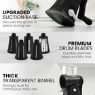 Zulay Kitchen Rotary Cheese Grater 5 Blade Shredder - Manual Jet Black Product Details Color: Jet Black Material: Stainless Steel Brand: Zulay Kitchen Style: 5 Blades Item Weight: 1.14 Kilograms Shape: Rectangular, Round Is Dishwasher Safe: Yes Manufacturer: Zulay Kitchen Package Dimensions: 10.12 x 7.56 x 5.59 inches Item Weight: 2.51 pounds Item model number: Rotary Cheese Grater - 5 Blades SAFE TO USE CHEESE GRATER: No more injuries! This rotary cheese grater is designed with easy to install blades that don’t require you to touch the blade directly. It also comes with a food pusher that keeps your hand away from the blades and lets you add more food into the wide hopper. This vegetable shredder is made from BPA-free, food-grade materials, making it safe to use. SAVE TIME AND EFFORT: If you love freshly grated cheese but don't want to put in a lot of effort, then this cheese grater with handle is just what you need. Simply rotate the handle to shred cheese 18 times faster than cutting cheese by hand; it is designed for both left and right handed people. Grate like a pro with our easy-to-use rotary cheese grater with handle. GRATE, SLICE, AND SHRED: With 5 interchangeable stainless steel blades, this rotary grater is perfect for thin and wavy vegetable slicing, coarse shredding, and fine and coarse julienne. The sharp blades of this multifunctional grater are perfect for grating with carrots, cucumbers, potatoes, nuts, cookies, and even a soft block of cheese. EASY TO CLEAN AND STORE: The hopper and blades, which handle most of the mess, are dishwasher safe for hassle-free cleaning. The base, handle, and food pusher can be quickly wiped clean. Plus, it comes with a compact storage box, keeping everything neatly organized and easily accessible in your kitchen cabinet. FUNCTIONAL DESIGN: The powerful suction base securely attaches to a clean and dry surface, preventing the food shredder from falling over. The transparent barrel is slightly inclined to prevent clogging and allow the food to come out smoothly.