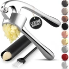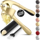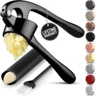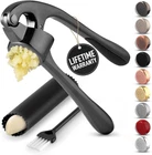 SIMPLE TO USE & BUILT TO LAST: Our premium quality garlic press is constructed from food-grade, rust-resistant materials meant to be among your favorite kitchen gadgets for years to come. This garlic and ginger mincer is designed with built-in studs to extract more paste within seconds. It is great for both professional and home kitchens. CRUSH AND MINCE UNPEELED CLOVES: No more strong garlic odor or sticky residue lingering on your hands! Our garlic mincer is designed with a comfortable ergonomic handle that requires minimal effort on your wrists and hands to peel, crush, and mince the cloves in one go; yielding delicious garlic paste while the peels stay in the chamber. EASY TO CLEAN: Simply rinse your garlic and ginger press tool under running water or place it in the dishwasher for thorough cleaning. We recommend rinsing the garlic crusher right after use to avoid residual pulp and fibers hardening up. MULTI-PURPOSE TOOL: Don’t have a mortar and pestle? Fill the garlic mincer tool with coriander seeds, cumin seeds, or peppercorns when any recipe calls for “freshly cracked” or “coarsely ground” seeds. This garlic presser can also be used as a ginger press tool or to crush onions or nuts. Simply fill the chamber and squeeze to crush. PROP 65 WARNING: This product may contain chemical(s) known to the State of California to cause cancer, birth defects and/or other reproductive harm. HASSLE-FREE, ZULAY GUARANTEE: We love and take pride in our ginger and garlic press and back this up with a lifetime warranty. We offer an incredible value at a moderate price and are confident that you'll love our garlic grinder! Product Description