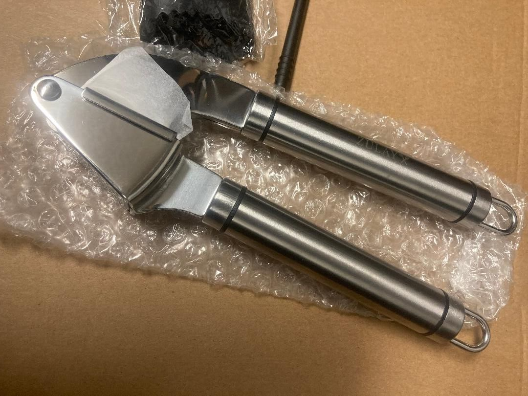 Zulay Stainless Steel Large Capacity Garlic Press & Silicone Peeler Set - New! open box- Please see pictures- thank you