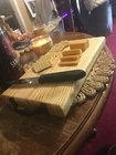 This custom-made cutting board is perfect for cheese lovers. Measuring 15x8 inches, it is made of high-quality wood and treated with food-grade oil for longevity. The rectangular shape and medium size make it easy to use and store. Its brown color and natural wood grain add a touch of warmth to any kitchen. Ideal for food preparation, it can also be used as a serving platter for cheese or other snacks. This cutting board is a must-have for any food enthusiast.