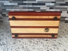 The padauk and maple edge grain cutting board is a striking and functional addition to any kitchen. It showcases the vivid, reddish-brown tones of padauk wood alongside the light, creamy hues of maple. The combination of these two woods creates a visually captivating contrast that's as much a piece of art as it is a kitchen tool. Crafted with precision in an edge grain pattern, this cutting board is built for durability. It offers a robust and resilient surface for all your chopping, slicing, and dicing needs. The fine sanding and finishing bring out the natural beauty of the wood, creating a smooth and inviting cutting surface. Not only is this cutting board a dependable workhorse in the kitchen, but it also serves as an eye-catching centerpiece. Its unique blend of colors and woodgrain patterns adds a touch of elegance and sophistication to your culinary space. Whether you're a professional chef or a home cook, this padauk and maple cutting board is sure to elevate both your cooking experience and the aesthetic appeal of your kitchen. Measurements: 15.5in x 9.5in x 1.75in Due to a manual measurements please allow few millimeters difference.