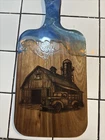 Design is laser engraved with beautiful resin at the handle. Cut on the back, and serve on the front!