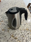 Premium Levella Stainless Steel Electric Kettle Condition: Great condition with minor scratches. Used very rarely and mostly sat on the counter for months. Material: Stainless steel with black plastic handle and lid. Features: Water level indicator, easy-to-use push-button lid, and a detachable power base with cord. Includes: Kettle and power base. Perfect for: Quickly boiling water for tea, coffee, or instant meals