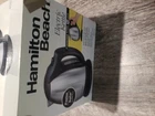 This is a Hamilton Beach electric kettle. It is a small kitchen appliance designed for boiling water quickly and efficiently. Perfect for making tea or coffee, this kettle offers convenience and speed in the kitchen.
