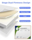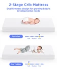 Certified Safety: Our mattress is crafted from safe, certified materials. The foam is CertiPUR-US certified, and the cover meets OEKO-TEX STANDARD 100. With CPC certification, you can rest assured that your baby sleeps safely Allergen-Resistant: The mattress cover includes a TPU layer that effectively prevents liquids, like urine and milk, from seeping through. The waterproof zipper on the side ensures complete waterproof protection, blocking allergens and safeguarding your baby’s skin and sleep Dual-Sided Design: Our baby mattress features both memory foam and high-resilience foam. The firmer foam side is perfect for infants (0-1 years), while the softer memory foam side is ideal for toddlers (1-3 years). It’s a mattress that grows with your child Easy to Clean: The 100% waterproof cover allows stains to be easily wiped away with a damp cloth. Additionally, the removable cover is machine washable for hassle-free maintenance Standard Dimensions: Measuring 52'' x 27.5'' x 5'', this mattress is compatible with all standard baby cribs, ensuring a perfect fit for your little one’s sleeping space