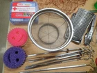 ITEM DESCRIPTION: A lot of vintage kitchen accessories and tools. ADDITIONAL INFORMATION: A variety of odds and ends silverware, a metal 3-tier hanging basket in a copper color, small Henckels tools, plastic gadgets, an assortment of grill tools and skewers, an unopened first aid kit, and much more. CONDITION: Very good, m Inor wear, as found. AGE: Unknown. COUNTRY OF ORIGIN: USA and foreign. LOTS: Due to logistic reasons we don’t break up lots. SHIPPING: We only use USPS, UPS, and FedEx. All items are safely packaged but they do still break on occasion. We buy insurance for fragile and/or valuable items. Street address required for FedEx and UPS deliveries. Bulky or very heavy items are listed for local pick-up only. INTERNATIONAL SALES: This item is available to international buyers only through the eBay Global Shipping program.