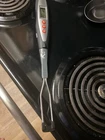 This meat thermometer is a must-have for any cooking enthusiast. With its sleek silver design and digital features, it's the perfect addition to your kitchen tools and gadgets. It's compatible with meat and helps you achieve perfectly cooked meals every time. It's easy to use and provides accurate readings, making it a reliable choice for any cooking task. Whether you're a professional chef or a home cook, this meat thermometer is a great investment. So why wait? Add this handy kitchen tool to your collection today!
