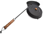 's Chestnut Roaster and Fireplace Popcorn Popper, Steel with Wood Handle An old fashioned popcorn popper for use over the hearth, backyard firepit, or campfire Made from steel with barbeque baked enamel steel Also works for roasting chestnuts 27" overall length with wood handle and leather hanging strap 3-1/2" D. x 9" diameter cooking area pops over 2 quart at a time
